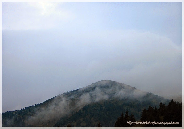 Jakże wspaniałe widoki byłyby tu dzisiaj, gdyby nie mleko mgieł, które skutecznie nam to uniemożliwiło. Jedynie co możemy zrobić to ruszyć wyobraźnię i kreślić w umyśle górskie panoramy.